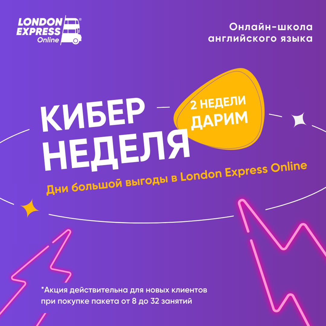 21 января 2025Кибернеделя в London Express Онлайн – получите 2 недели обучения в подарок!